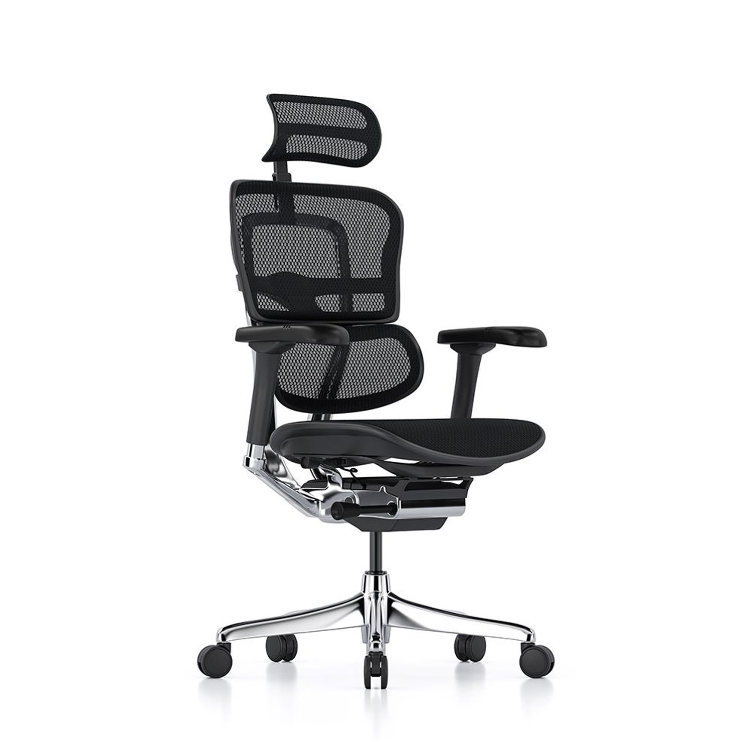Esta silla ergonómica premium cuenta con un espaldar en estructura de aluminio con sistema regulable en altura y soporte lumbar autoajustable. De esta manera, se adapta a la espalda y brinda un soporte continuo. Asimismo, permite mantener una postura correcta durante el uso prolongado.