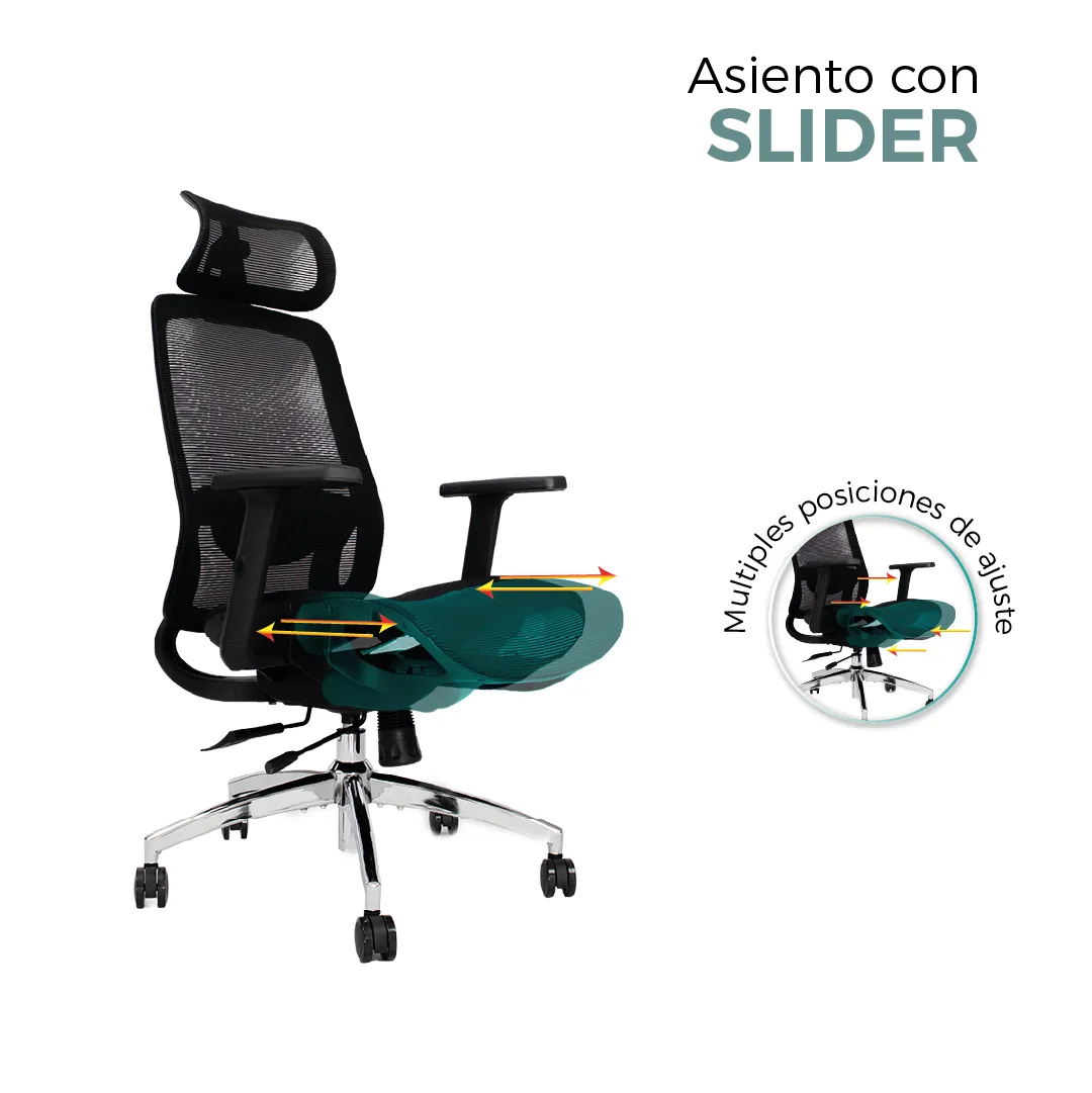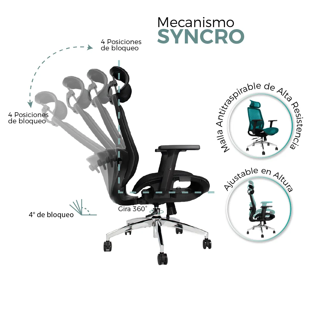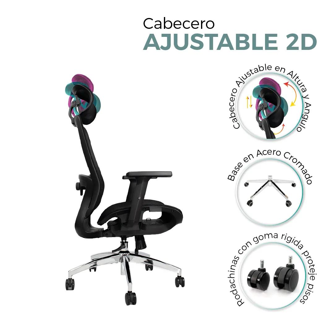 Cuenta con sistema de ajuste de altura que permite adaptarla a diferentes usuarios y escritorios. Además, su base resistente y ruedas de alta calidad garantizan estabilidad y movilidad en todo momento.