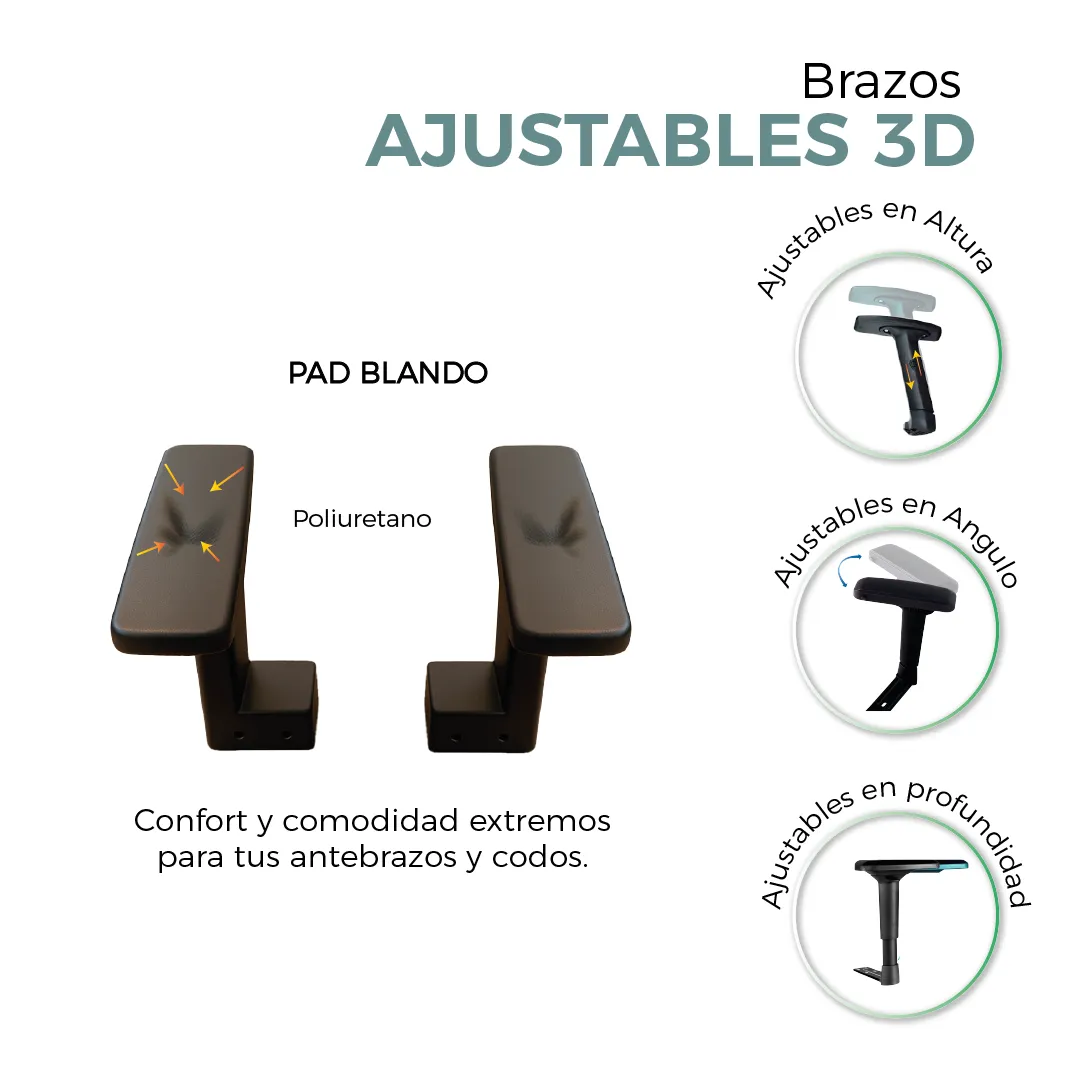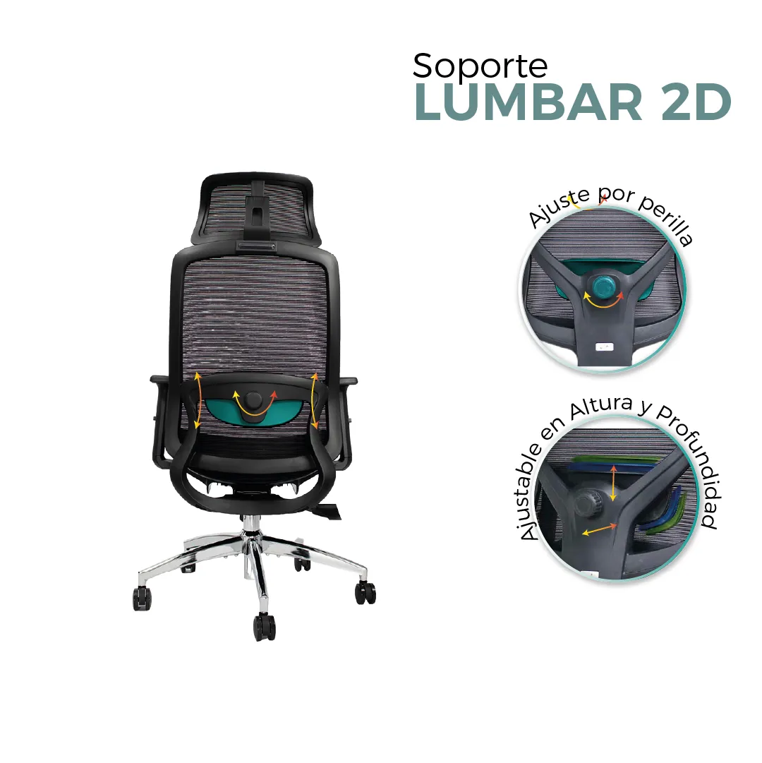 | Apoyo Lumbar | 2D. Regulable en altura y profundidad. |